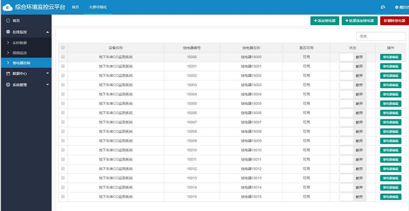支持電(dian)腦端、APP端遠程手動控制現場設備繼電(dian)器(qi),且繼電(dian)器(qi)名稱可自定義編輯,相(xiang)應繼電(dian)器(qi)控制功能(neng)是否(fou)啟用客戶可自行編輯。