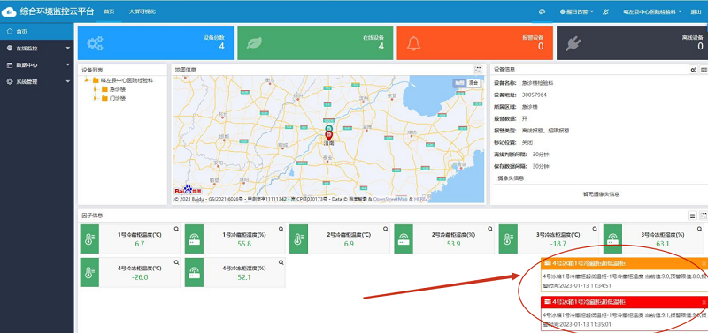 當任一位置的溫度值超過預置報警值、設備處于離線狀態、或者冰箱斷電時,系統能提供平臺界面告警、短信告警、電話告警、郵件告警等報警方式,并進行事件記錄,供調用和分析。