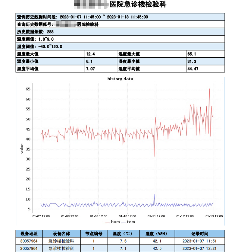 系統提供分級管理功能,當溫度異常實現分級分層報警(本地聲光、短信、電話、郵件等不同形式),各級工作人員可接收負責區域的報警信息,及時處置異常情況,同時可查詢所負責區域的溫濕度歷史數據和實時數據,并可以導出需要的報表格式,實現冰箱溫度的遠程實時在線監管。