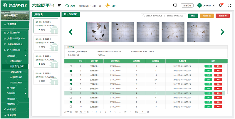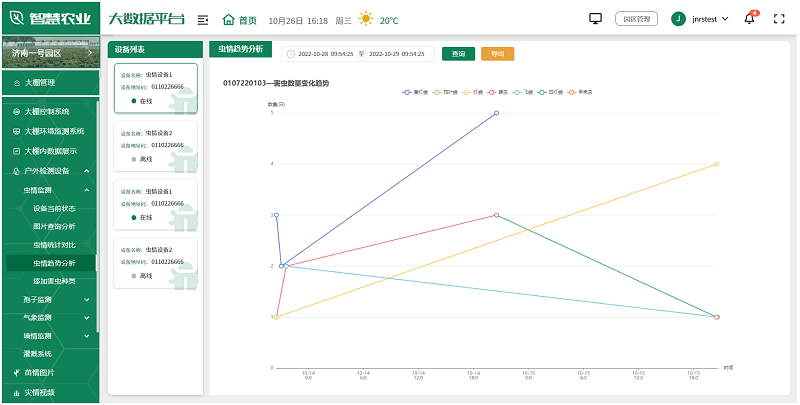 調用百度AI識別,自動識別害蟲種類和數量,進行統計和趨勢分析,提供精準的蟲害數據。