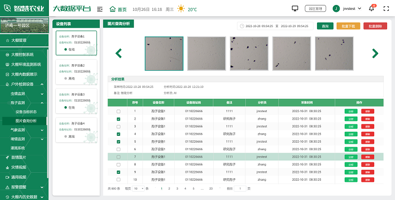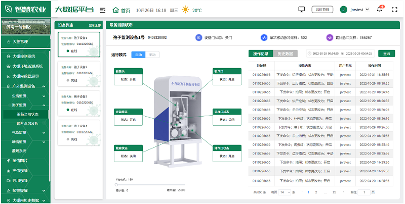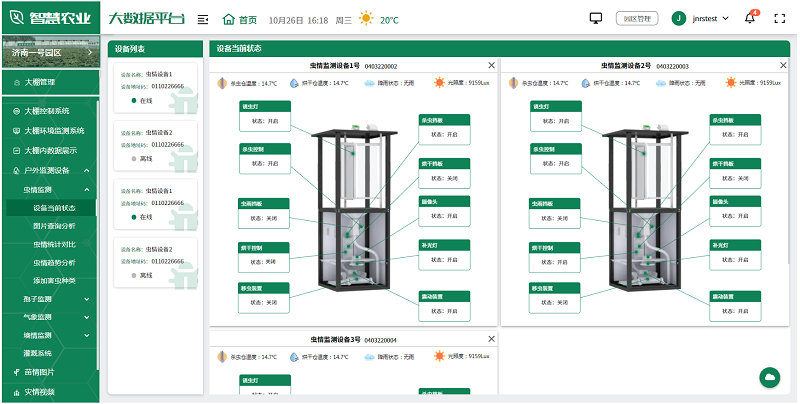 用戶可根據實際情況,選擇安裝在園區的各種監測設備,如土壤濕度傳感器、氣象站、蟲情測報儀、孢子捕捉分析儀等,全面監測園區的環境變化,及時發現并解決生產中的問題,為未來的農業生產提供科學依據。
