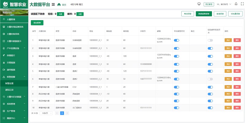 智慧農業大數據平臺通過連接各種智能傳感器和設備,實現了對棚內/戶外環境的實時監測和精準調控。平臺可以實時收集溫濕度、光照強度、二氧化碳濃度等關鍵參數,還擁有開關量、正反轉、百分比控制功能,能夠通過數據分析,自動調節棚內環境,也能通過手機或電腦隨時進行遠程控制,確保作物在最適宜的條件下生長,實現智能管理。